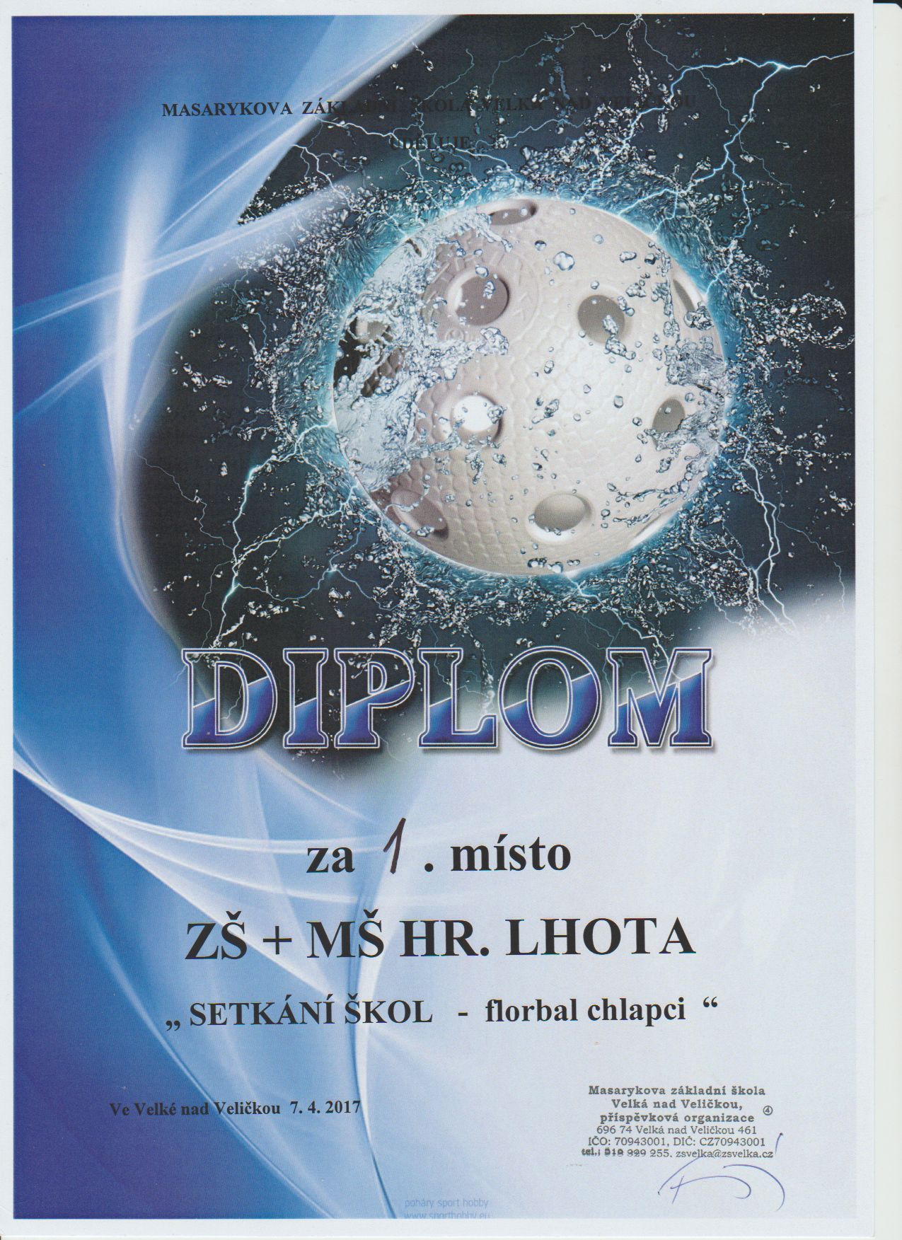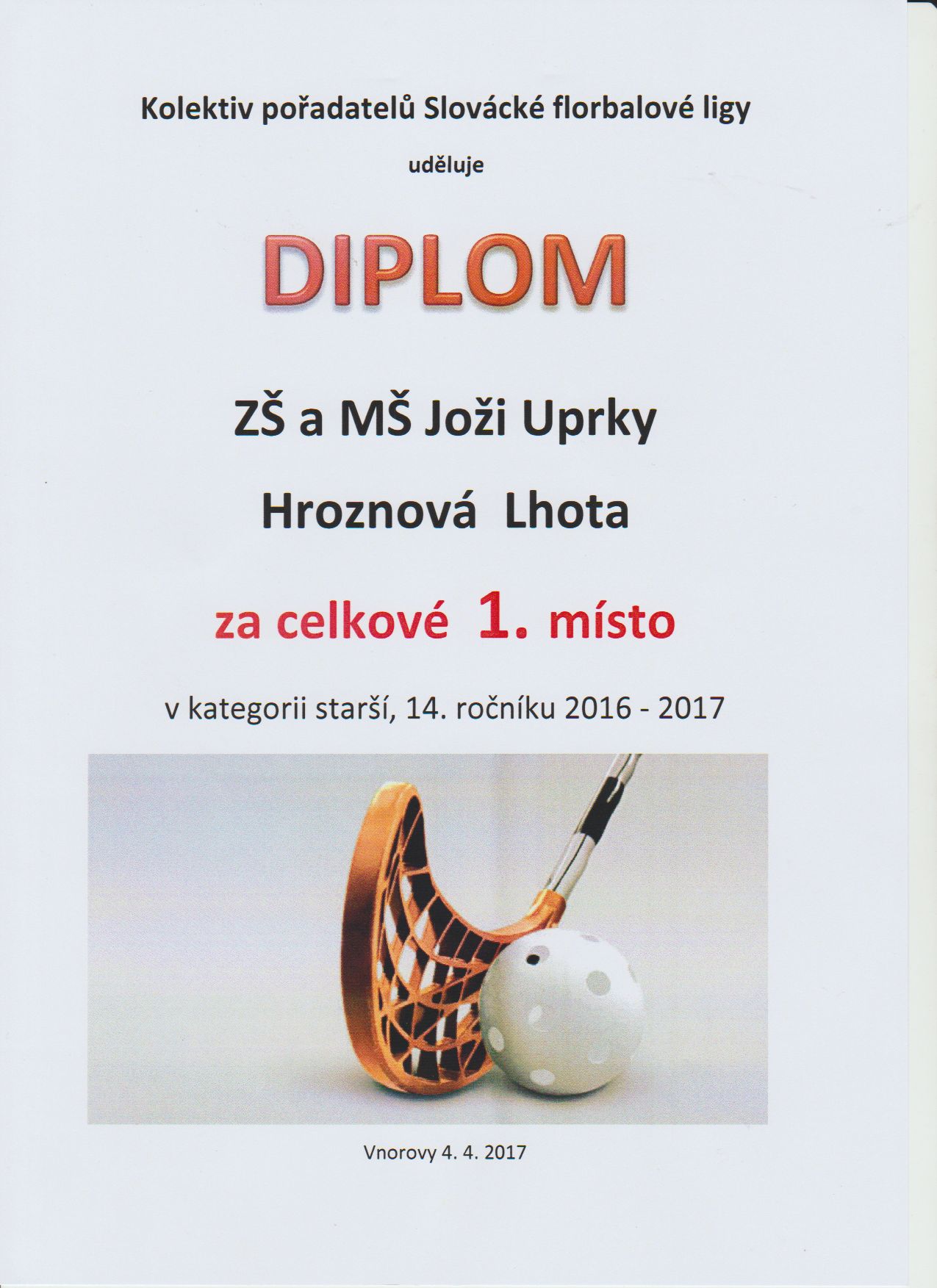 Už jsme si zvykli, že kam přijedou naši starší hoši na florbalový turnaj tam zvítězí. Tentokrát to bylo na mezinárodním turnaji ve Velké nad Veličkou při tradičním setkání škol s účastí polského týmu města Nowy Dvor. V turnaji ještě nastoupili chlapci z lipovské základní školy a domácí borci z Velké nad Veličkou.  Všechna utkání naši vyhráli, každému se soupeřů "nadělili" devět "banánů"  a získali 9 bodů a skore 27:4.  Po zásluze byli odměněni potleskem trenérů i hráčů zúčastněných družstev. Bravo!!